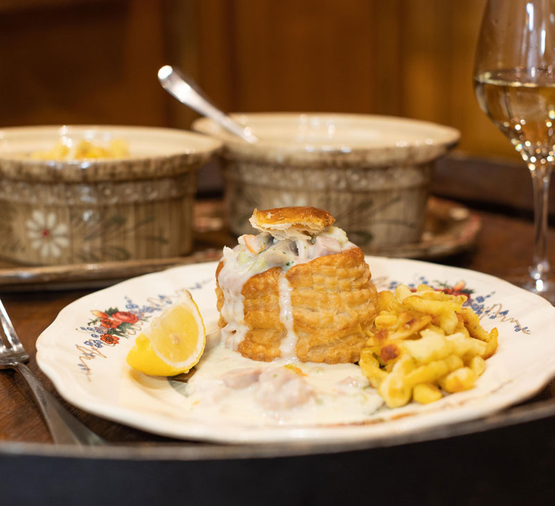 Des bouchées à la reine maison aux choucroutes aux 7 viandes primées, notre cheffe Rachel sublime les recettes d’antan avec passion. Tout est fait maison, à base de produits frais, locaux et de saison. À découvrir dans notre salle ou en terrasse, toute l’année.